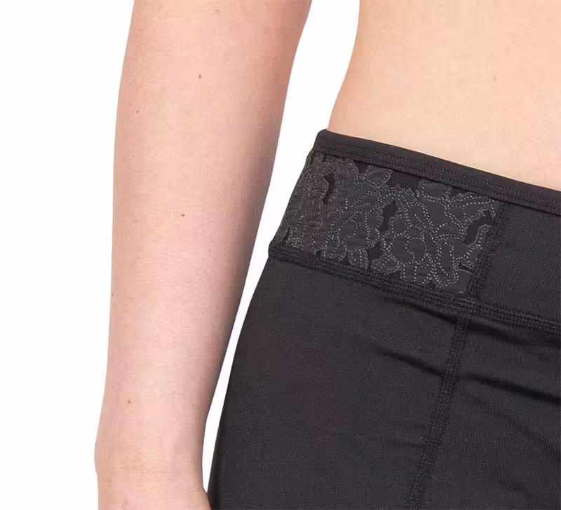 Deze legging is stoer en toch elegant door de afwerking van bloemen in de tailleband. Dit deel is niet doorzichtig maar geeft wel een tof effect. Er is een bijpassende top bij verkrijgbaar en er zijn andere kleuren in de winkel.