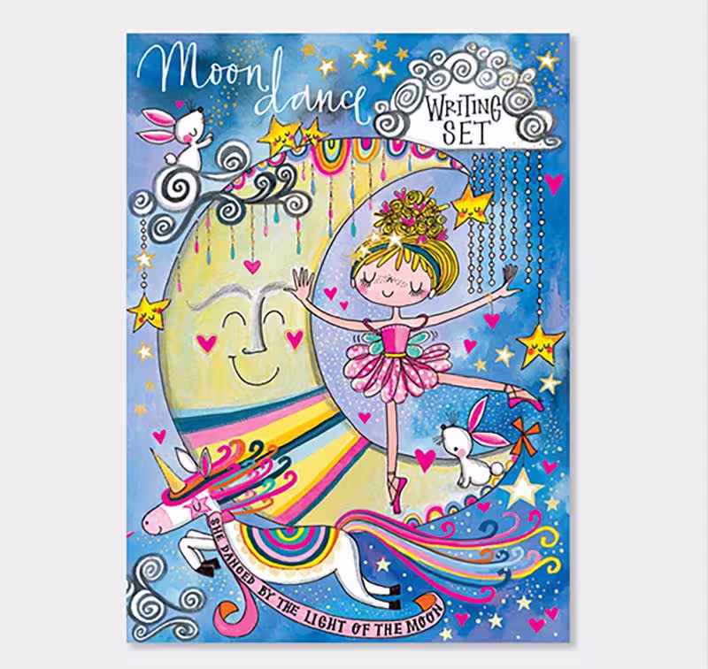 Uitgebreide set met postpapier en enveloppen vol met ballerina’s in het thema Moondance
